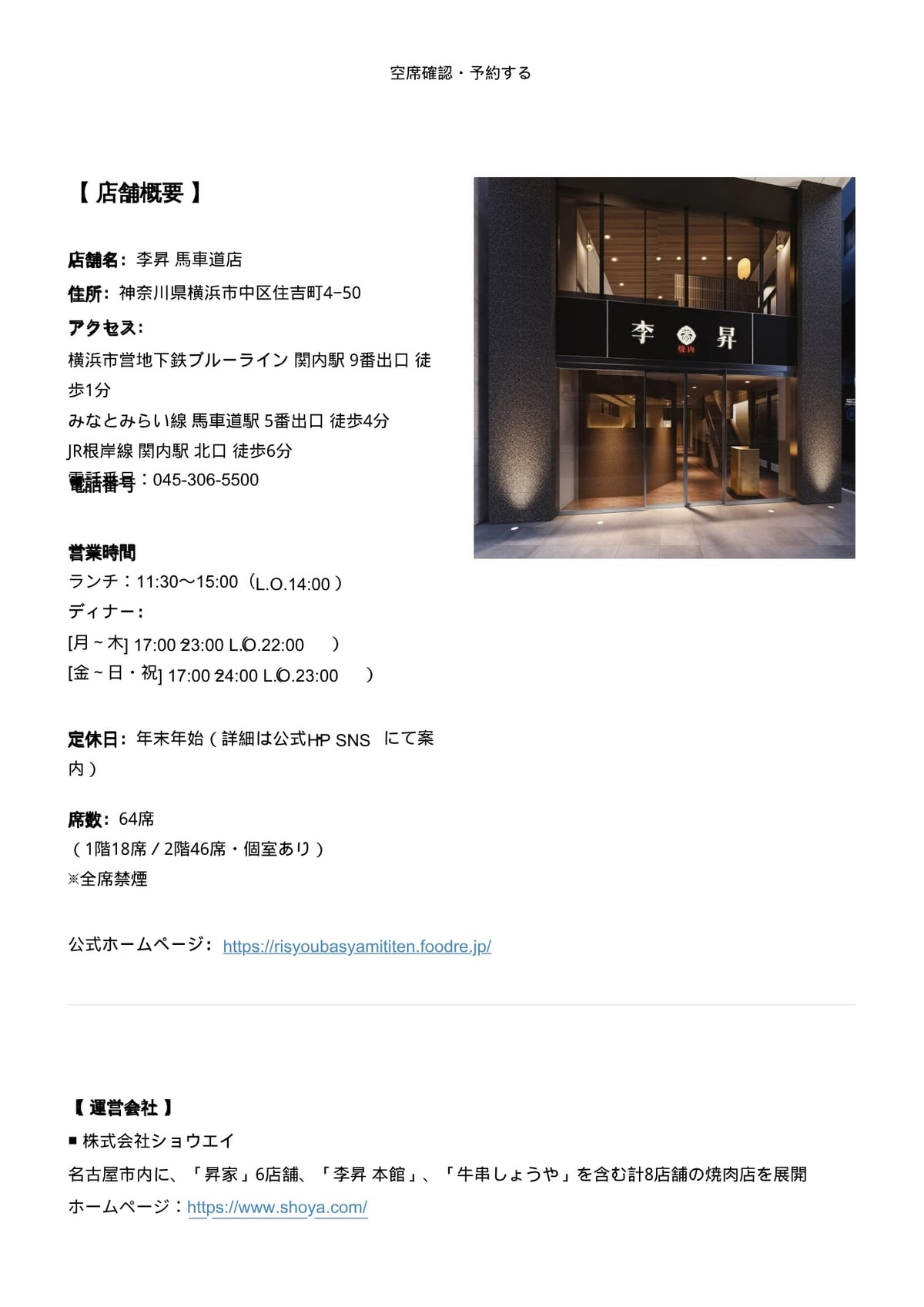 今後とも李昇 馬車道をどうぞよろしくお願いいたします。